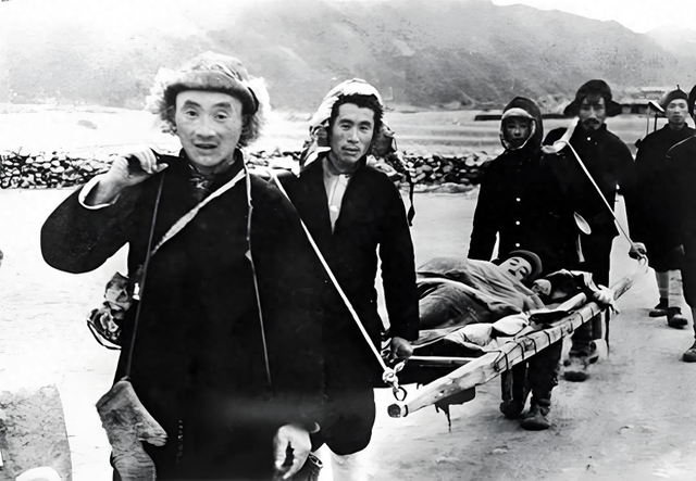 在朝鲜战场,担架队员在炮火硝烟中及时把弹药、物资补充上去,把受伤的战士抢救下来,转移到后方医院。有的担架队甚至跟随主力部队参加五次战役,越过了三八线,许多担架队员牺牲在了运送途中。
